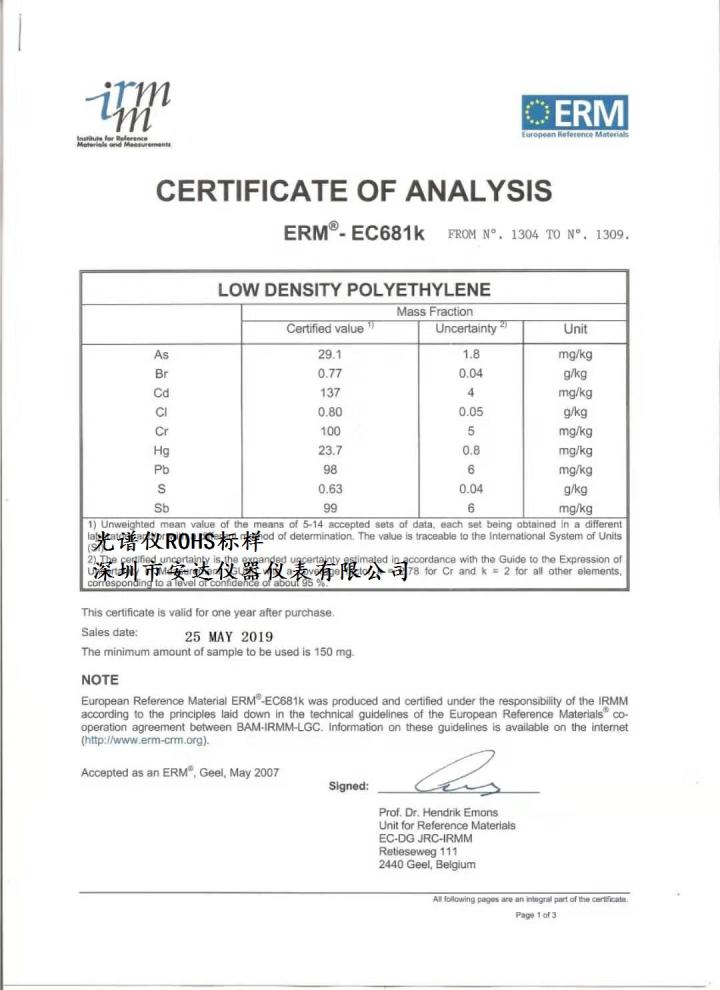 ROHS光譜儀ec681k ec680k標(biāo)樣